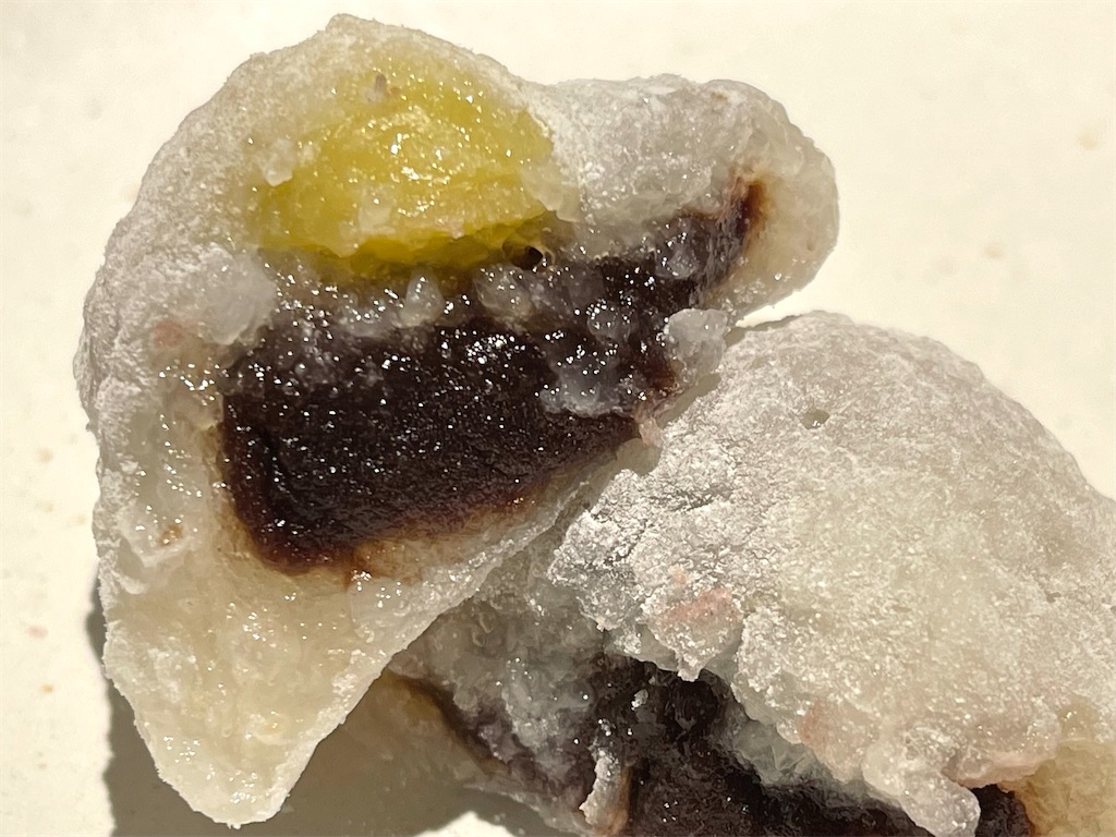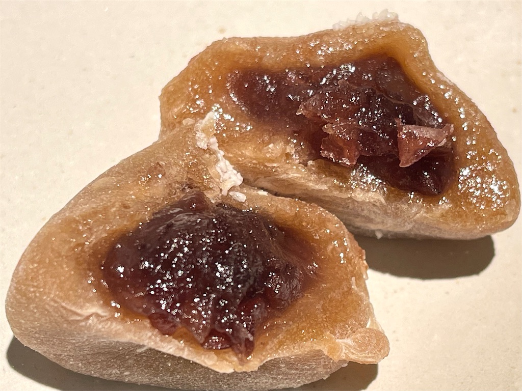 ほんのり黒糖香る柔らかい求肥製の皮と、それに負けない力強いあんこ。