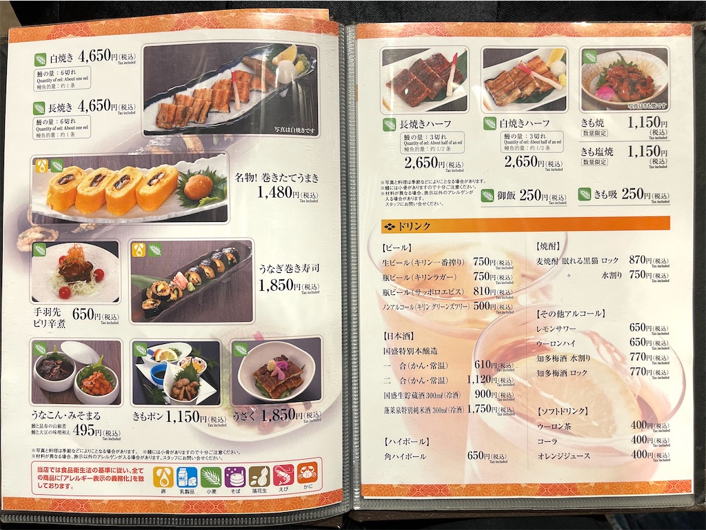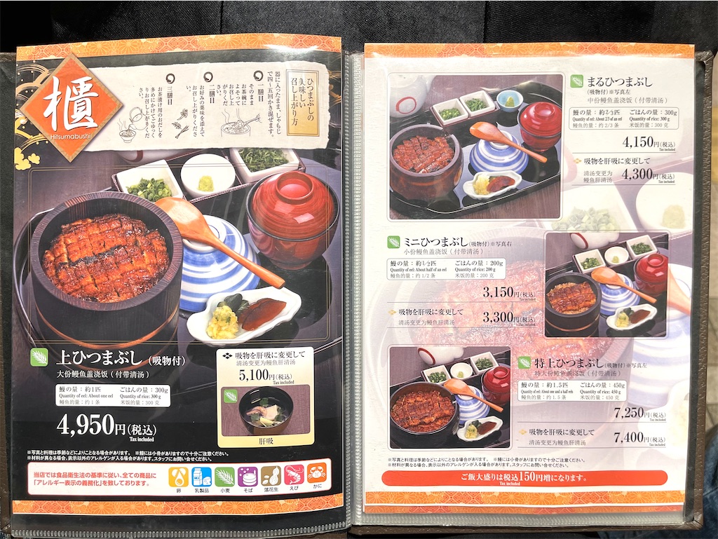 こちらではテイクアウトもでき、店内でいただく櫃まぶしメニューと同じようなラインナップになっています。