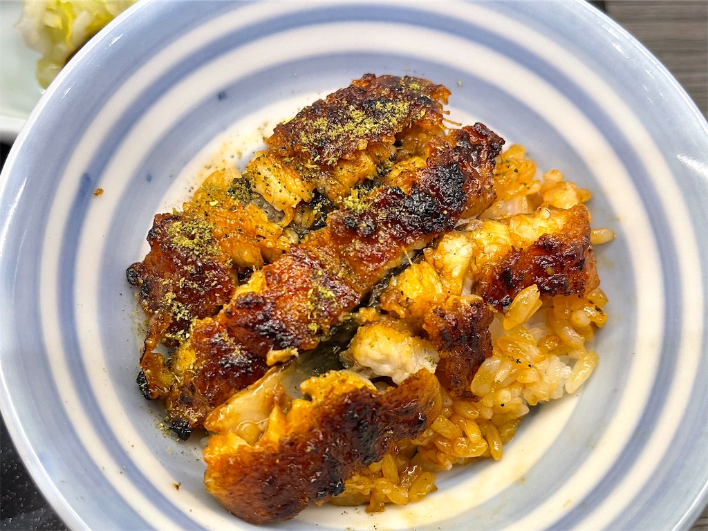 そして鰻。こんがりと美味しそうな焼き色。半分のサイズなので、さすがに控えめな印象です。。。