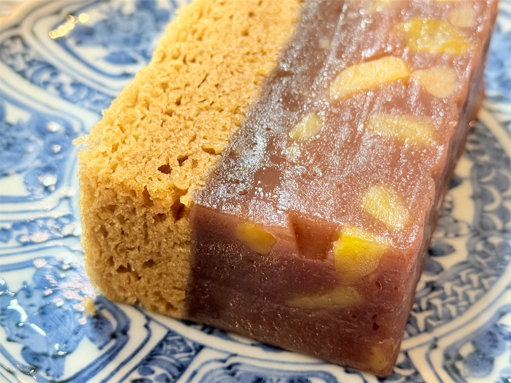 名古屋の栗蒸し羊羹といえばこれ!松風との二層になったものです。こちらのお店も例に漏れず二層仕立て。